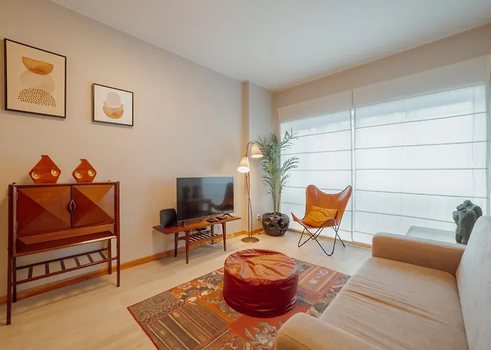 A Ribeira tér alig 1 km-re, a Kristálypalota kertje pedig 10 perc sétára van az 55 m^2-es apartmantól. Az ingatlan Porto Boavista körzetében fekszik. A Duero rövid sétára található az 1 hálószobás apartmantól.